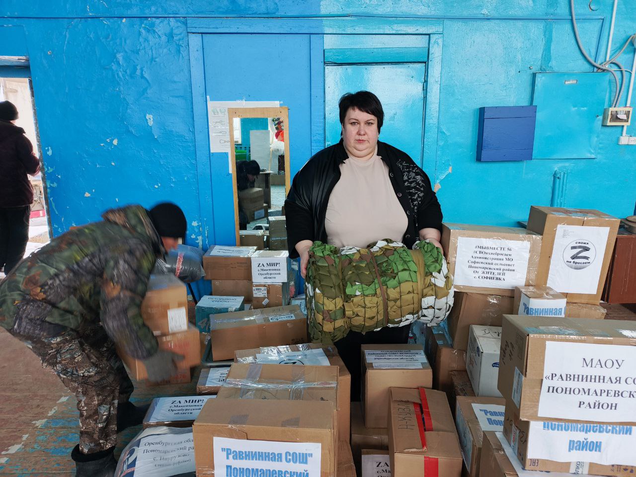 На днях в Фонд «Защитник» приехала гуманитарная помощь сразу из двух мест: Егорьевского сельсовета и Пономарёвского района. Маскировочные сети, продукты, тёплая одежда и необходимые в быту вещи скоро отправятся в зону проведения специальной военной операции с первой машиной. Волонтёрам Егорьевского сельсовета повезло вдвойне — всё привезённое сразу было отгружено в отправляющийся автомобиль, который уже находится в пути на фронт.